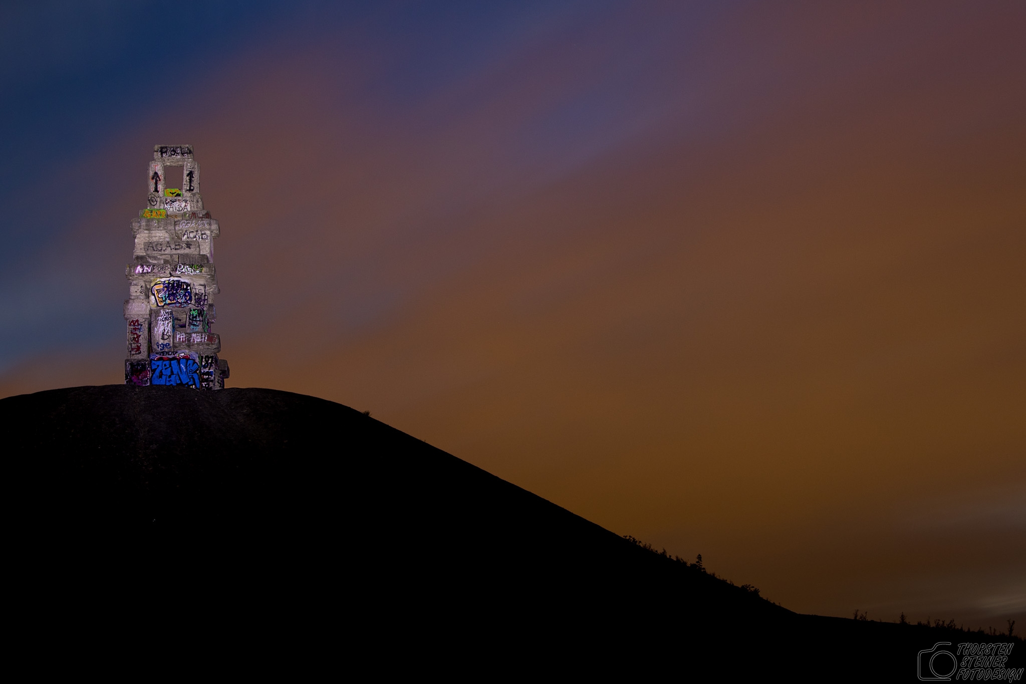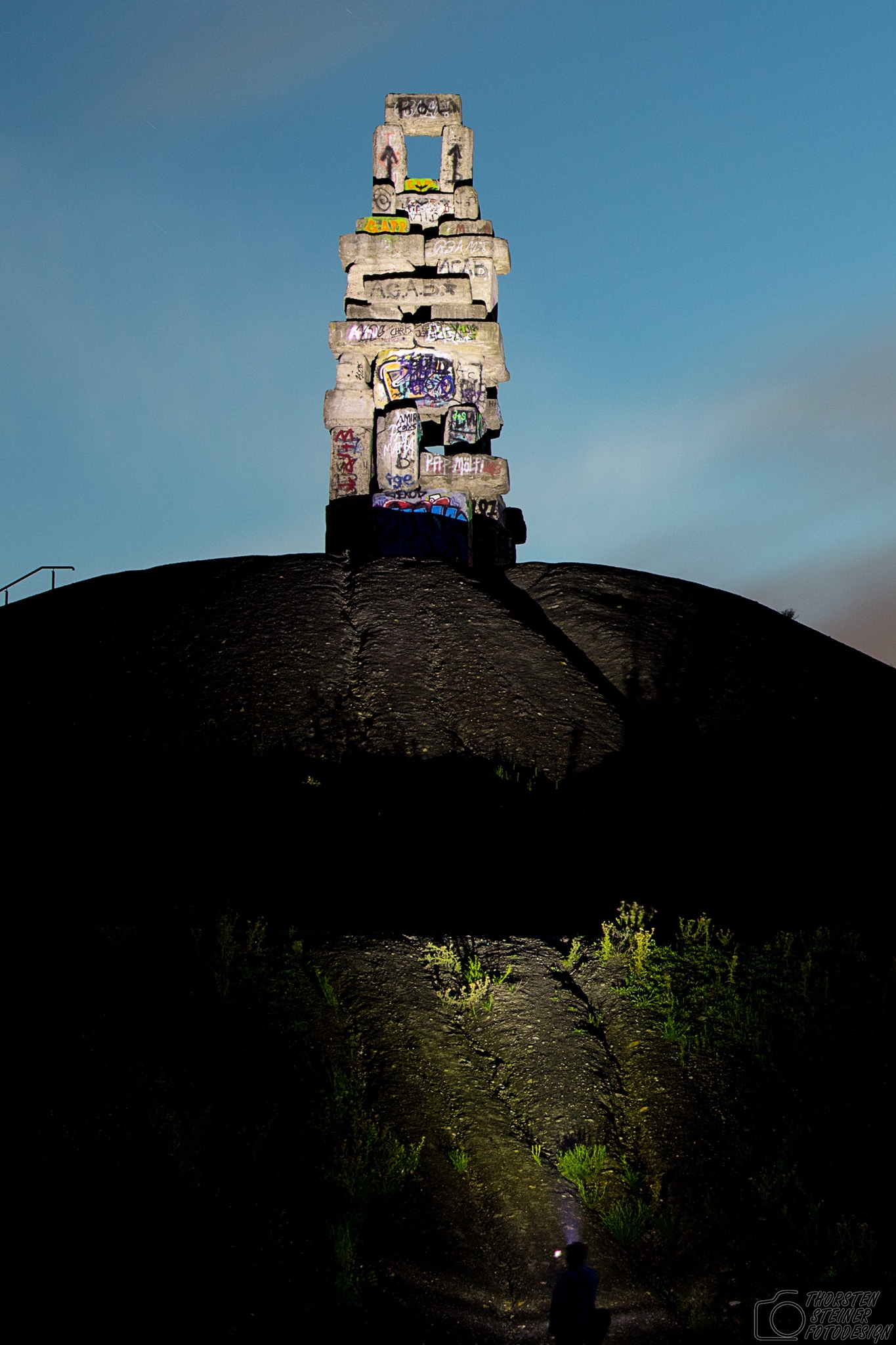Gestern Abend ging mein Project: night shift mit Station 10 weiter: Die Himmelstreppe auf der Halde Rheinelbe in Gelsenkirchen. Bitte nicht verwechseln mit der Himmelstreppe an der Halde Norddeutschland in Neukirchen-Vluyn! Vielleicht wegen dieser Verwechslungsgefahr, ist die Skulptur, die aus alten Betonklötzen der Kokerei Königsborn besteht, auch bekannt als „Himmelsleiter„. Da es auf der Halde keine Beleuchtung gibt, was ja nicht unüblich ist ;), und auch die Landmarke kein künstliches Licht erhellt, habe ich hier etwas in die Trickkiste gegriffen und zum Teil selbst für die Beleuchtung gesorgt. Dabei lieferte meine kleine LEDLenser M7RX echt gute Dienste, weshalb unter den Fotos auch eins als Making-of/Beweis zu finden ist, auf dem man mich beim Beleuchten sieht…